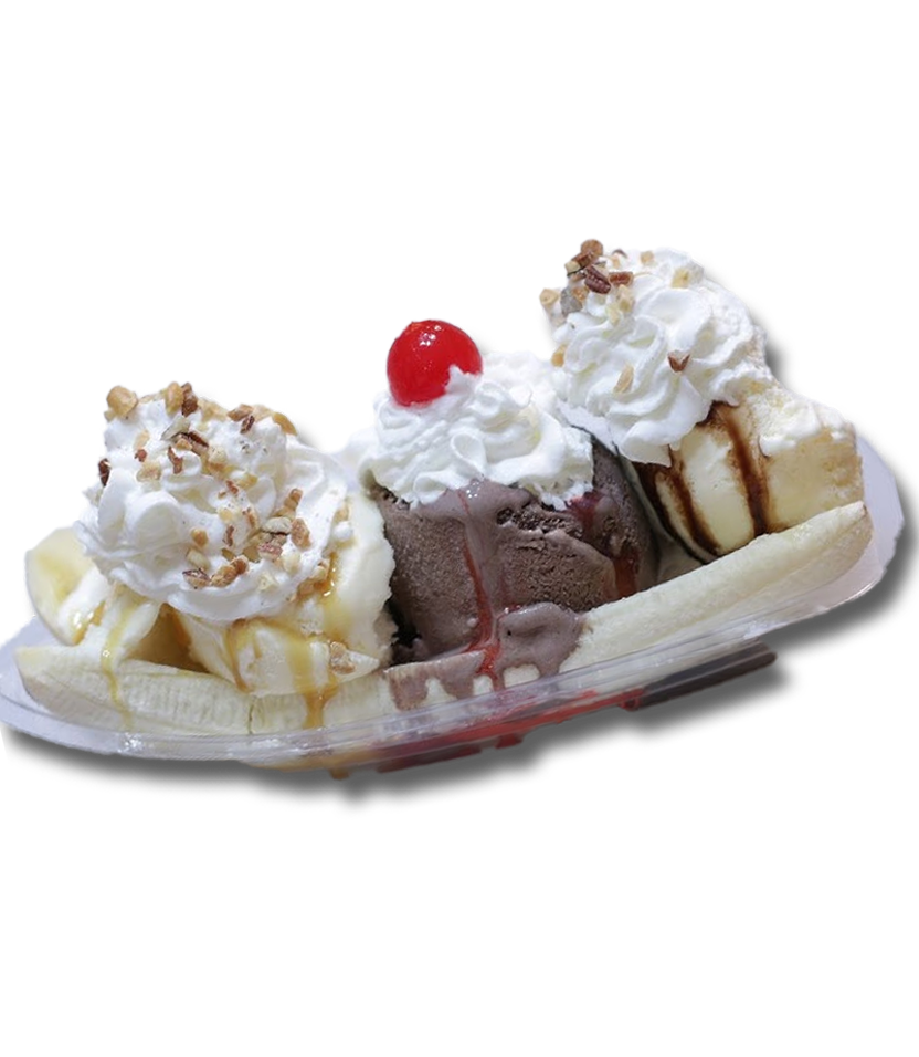 A classic split includes one scoop each of vanilla, chocolate, and strawberry ice cream nestled between the banana halves and topped with whip cream.