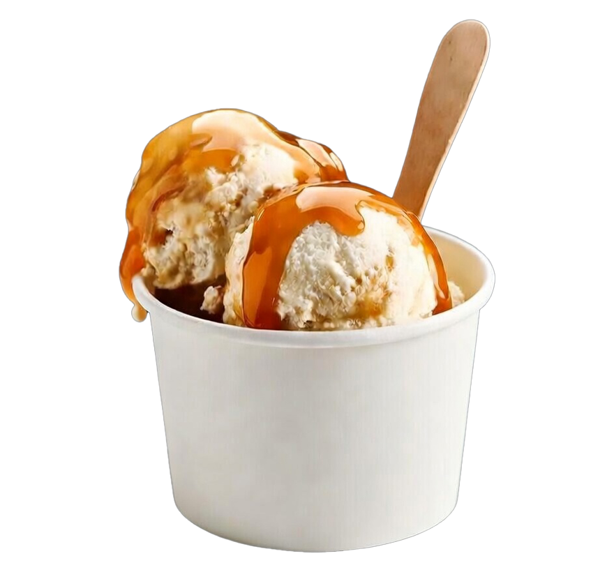 Caramel Sundae: A popular themed option combining vanilla ice cream with caramel sauce, and toasted peanuts.